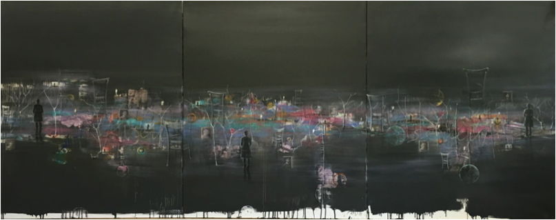 7 Raben, Looking for Magic | 2016 | 3-teilig 120 x 300 cm | Öl-Collage auf Leinwand