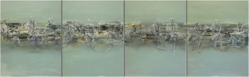 Sommergäste | 2016 | 100 x 320 cm, 4-teilig | Öl auf Leinwand